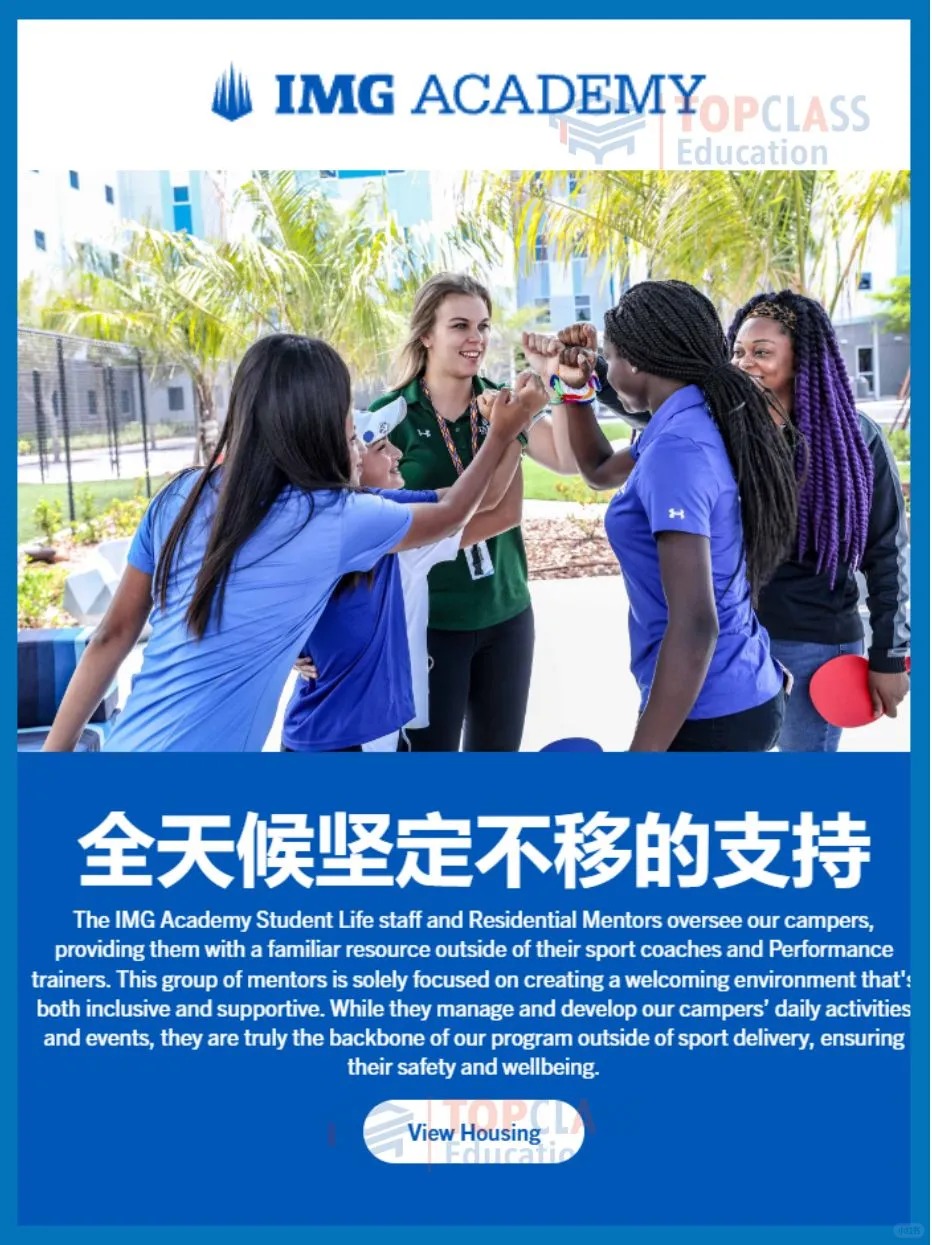 除了体育活动,IMG也注重孩子的文化教育和心理培训,以帮助他们对未来学校生活和人生做好准备。如果体育是你喜爱又擅长的项目,就去IMG看看,一定会你留下难忘的回忆。也欢迎私信topclass-edu,让我们为你提供更多的信息和服务。
